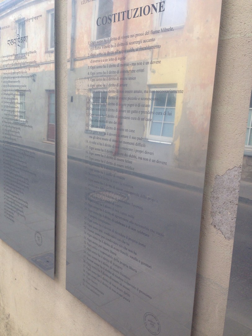 Nel centro storico di Vilnius, patrimonio dell’umanità dell’Unesco, separata dal fiume Vilna sorge la Repubblica di Uzupis, autodichiaratasi indipendente nel 2000. Con qualche foto vi porto alla scoperta della città degli artisti e della sua costituzione.